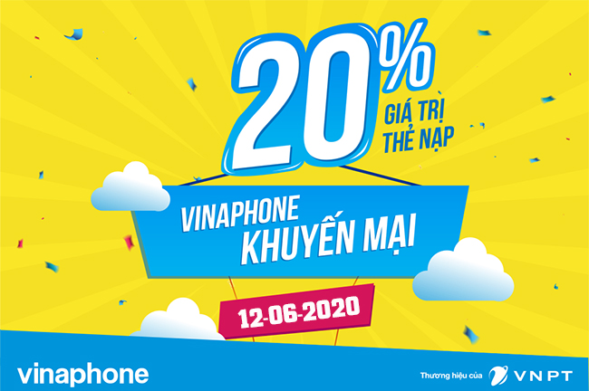 Vinaphone khuyến mãi tặng 20% thẻ nạp trong ngày 12/06/2020